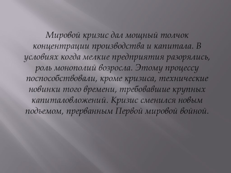 Слайд 5Мировой кризис дал мощный толчок концентрации производства и капитала. В