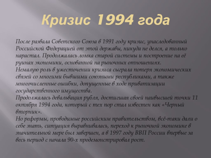 Слайд 12Кризис 1994 года