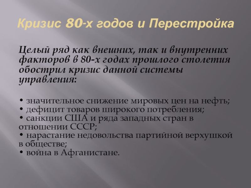 внутренних факторов в 80-х годах прошлого столетия обострил кризис данной