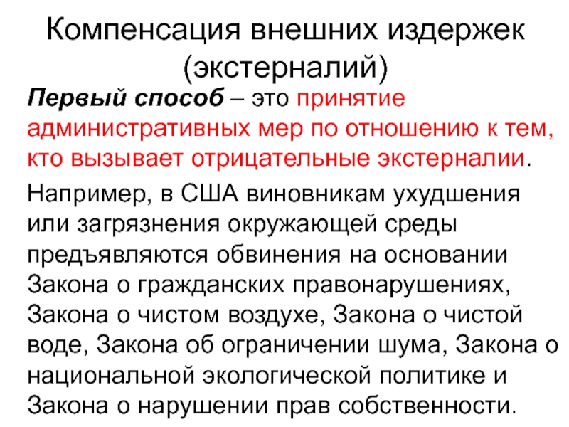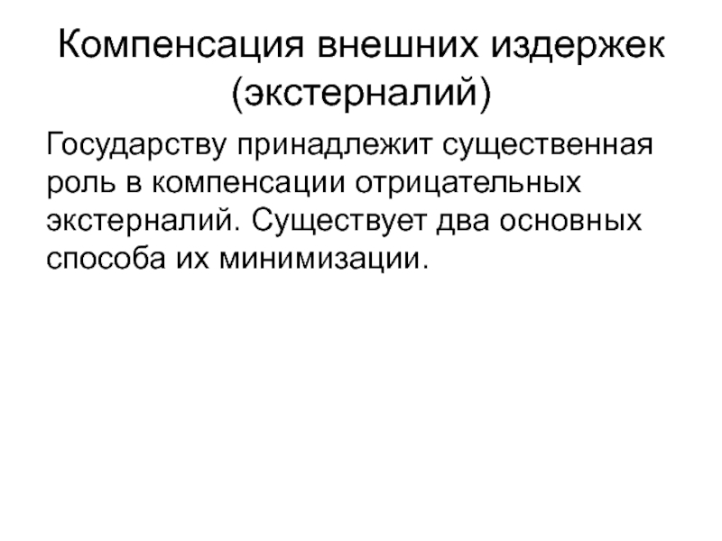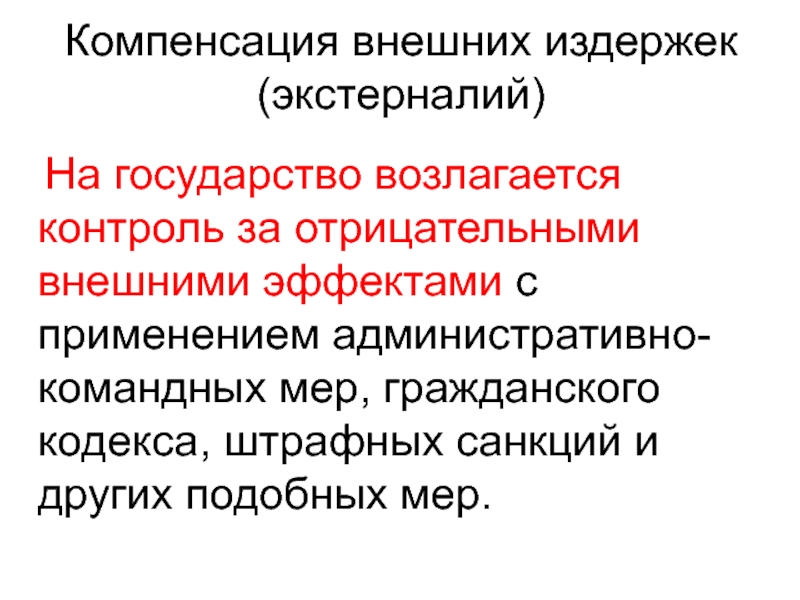 Слайд 65Компенсация внешних издержек (экстерналий)