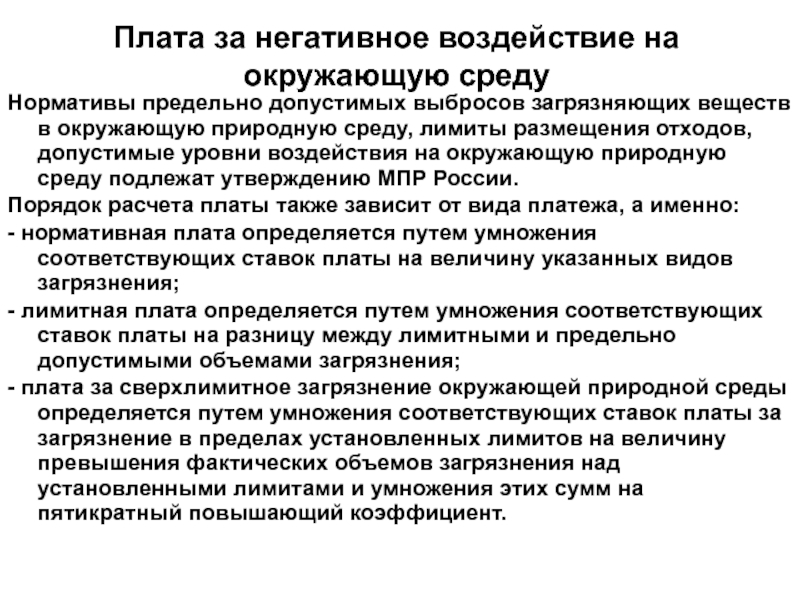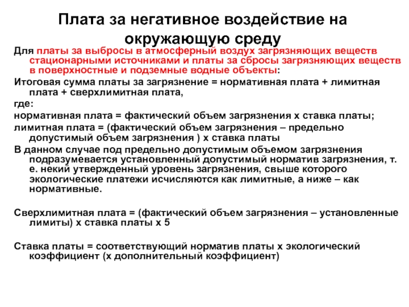 Слайд 54Плата за негативное воздействие на окружающую среду