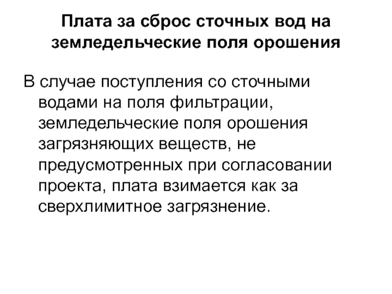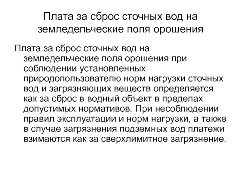 Слайд 59Плата за сброс сточных вод на земледельческие поля орошения