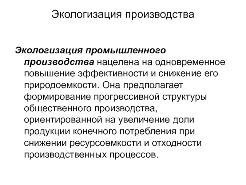 Определить сущность понятия «экологизация производства».