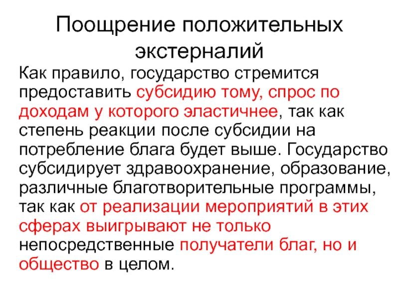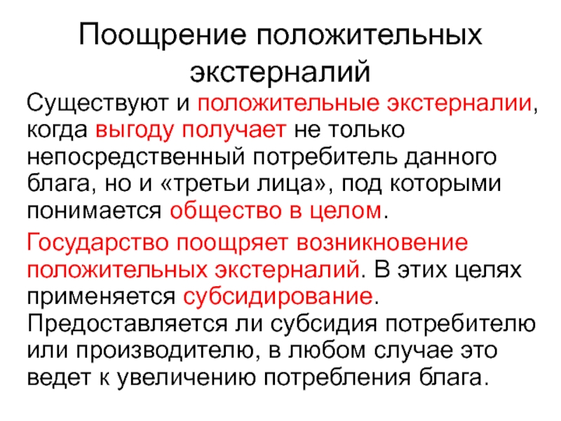 Слайд 66Поощрение положительных экстерналий