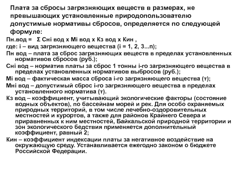 Слайд 56Плата за сброс загрязняющих веществ в пределах установленных лимитов рассчитывается