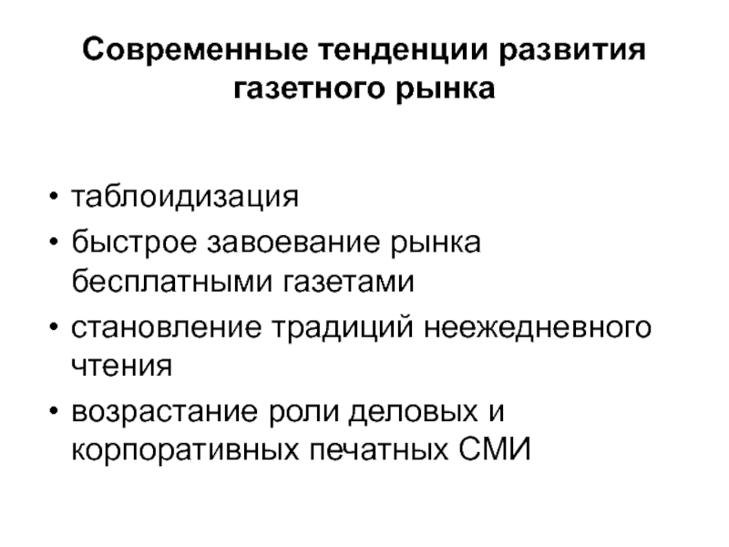 Слайд 23Современные тенденции развития газетного рынка