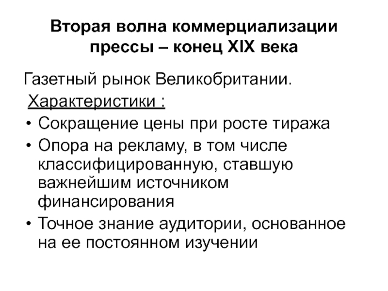 Слайд 10Вторая волна коммерциализации прессы – конец XIX века