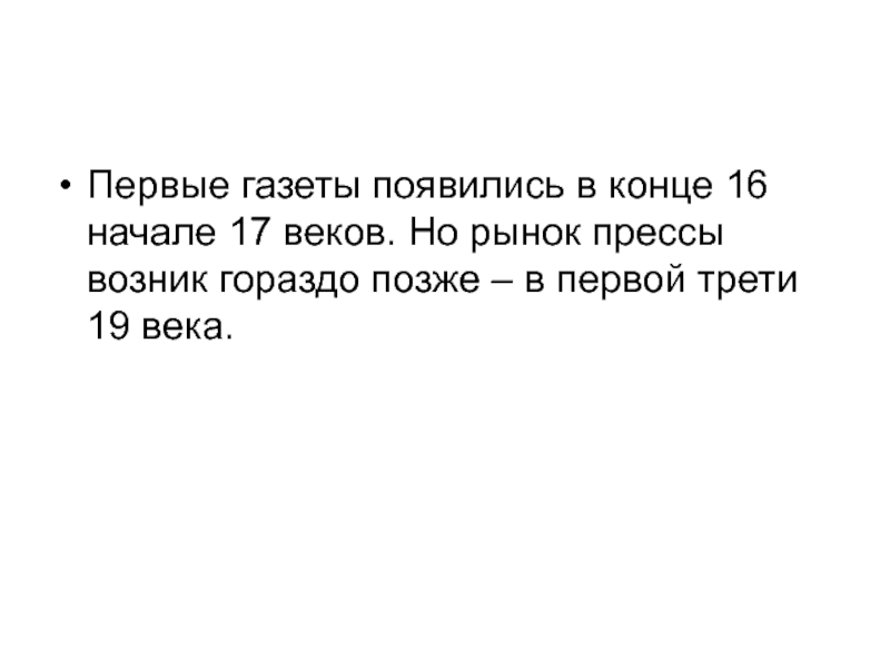 рынок прессы возник гораздо позже – в первой трети 19
