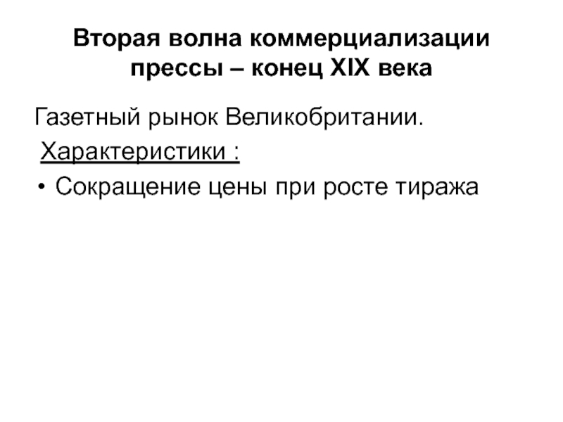 Слайд 9Вторая волна коммерциализации прессы – конец XIX века
