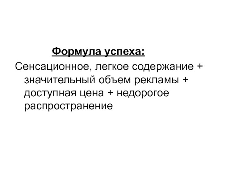 Сенсационное, легкое содержание + значительный объем рекламы + доступная