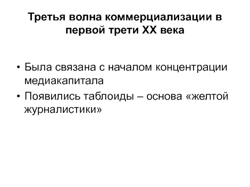 Слайд 11Третья волна коммерциализации в первой трети XX века