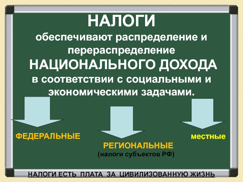 НАЛОГИ  обеспечивают распределение и перераспределение  НАЦИОНАЛЬНОГО ДОХОДА  в соответствии с