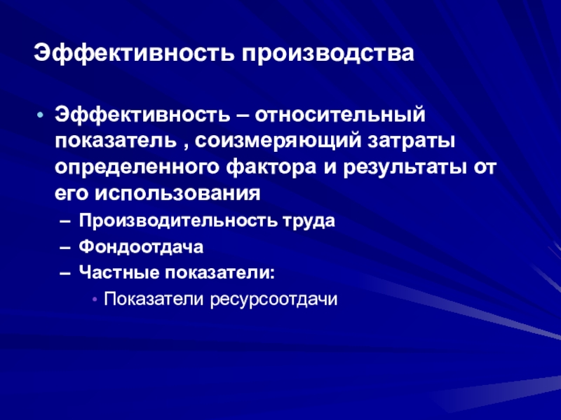 Эффективность – относительный показатель , соизмеряющий затраты определенного фактора