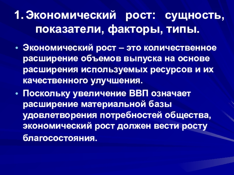 Слайд 21. Экономический рост: сущность, показатели, факторы, типы.