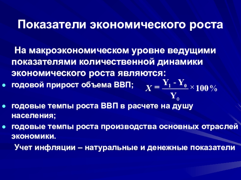 На макроэкономическом уровне ведущими показателями количественной динамики экономического