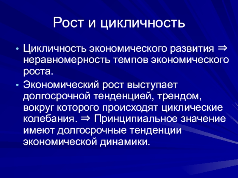 рост выступает долгосрочной тенденцией, трендом, вокруг которого происходят циклические колебания.