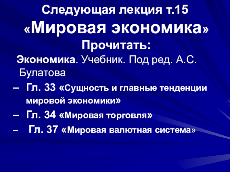 Слайд 22Следующая лекция т.15 «Мировая экономика»