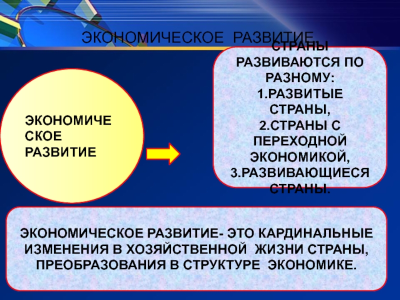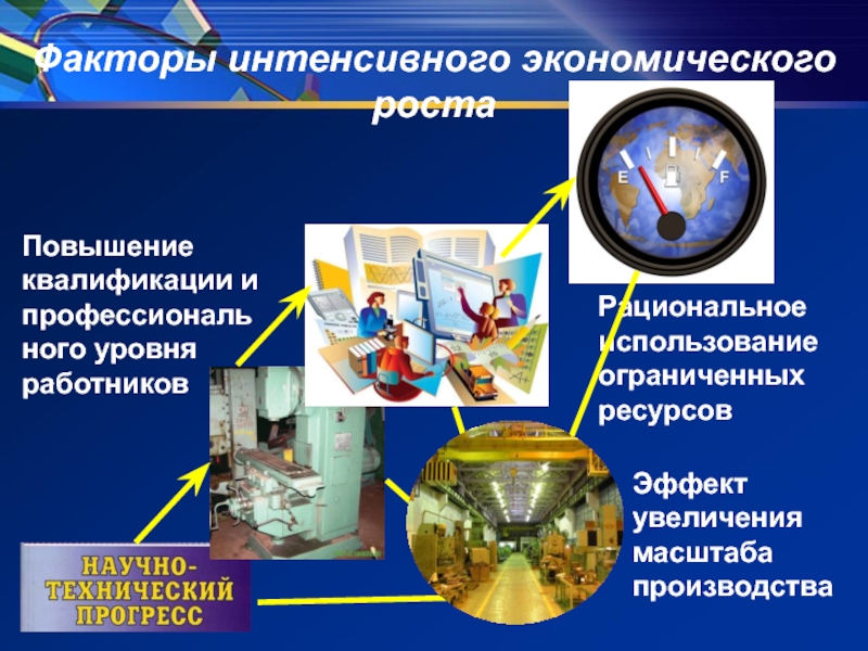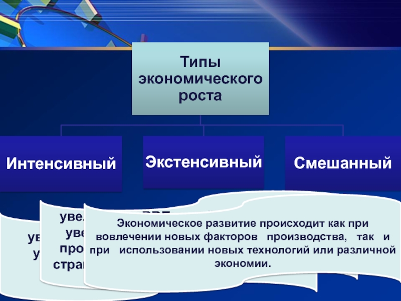 Экономическое развитие происходит как при вовлечении новых факторов   производства,   так   и   при   использовании новых технологий или различной экономии.
