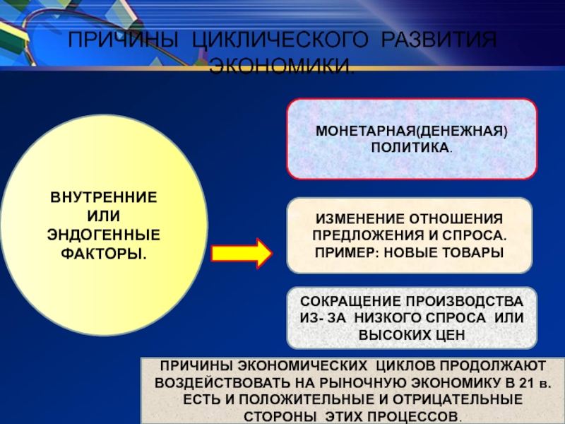 ПРИЧИНЫ ЭКОНОМИЧЕСКИХ ЦИКЛОВ ПРОДОЛЖАЮТ ВОЗДЕЙСТВОВАТЬ НА РЫНОЧНУЮ ЭКОНОМИКУ В 21 в. ЕСТЬ И ПОЛОЖИТЕЛЬНЫЕ И ОТРИЦАТЕЛЬНЫЕ СТОРОНЫ ЭТИХ ПРОЦЕССОВ.