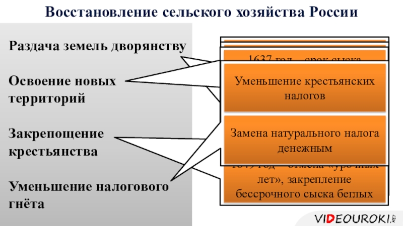 1637 год – срок сыска беглых крестьян увеличен до 9 лет