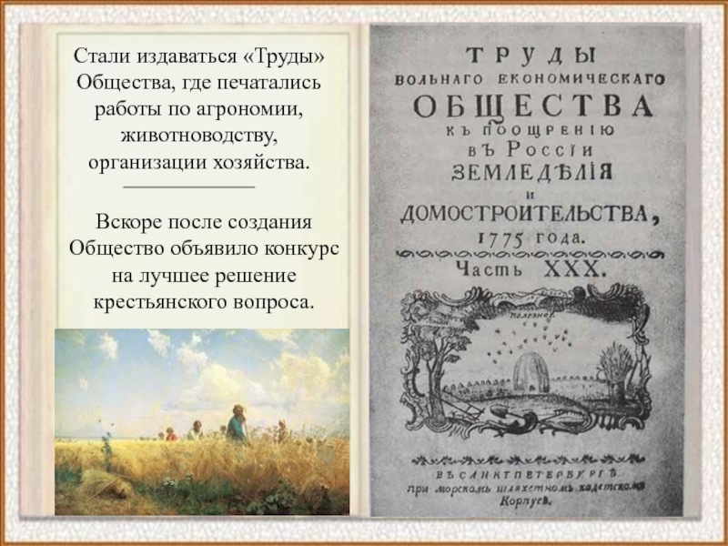 Создано для оказания помощи помещикам в освоении новейшего отечественного и зарубежного опыта ведения сельского хозяйства.