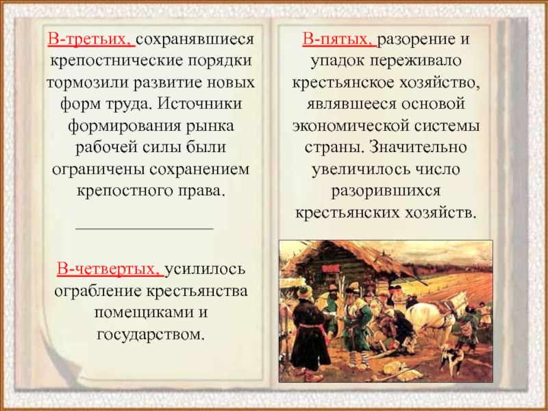 В-четвертых, усилилось ограбление крестьянства помещиками и государством.