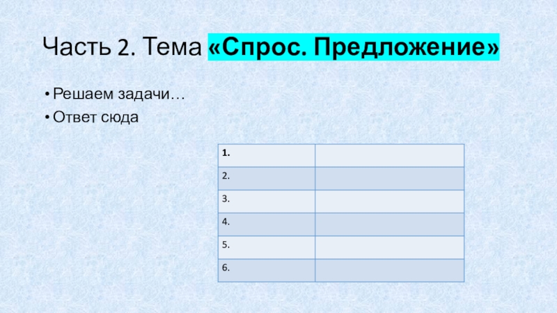 Часть 2. Тема «Спрос. Предложение»Решаем задачи…Ответ сюда