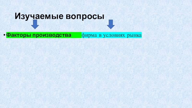 Изучаемые вопросыФакторы производства фирма в условиях рынка