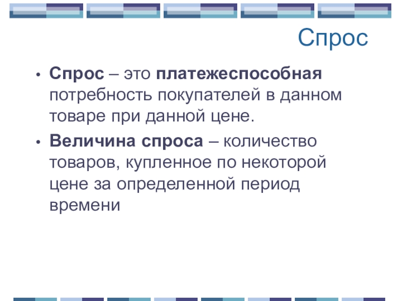 Спрос – это платежеспособная потребность покупателей в данном товаре