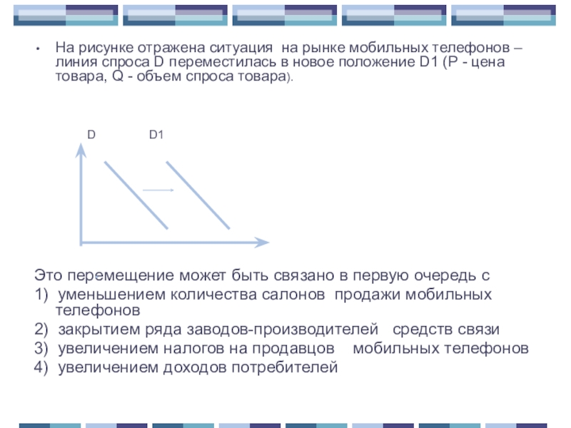 Слайд 35На рисунке отражена ситуация на рынке мобильных телефонов – линия