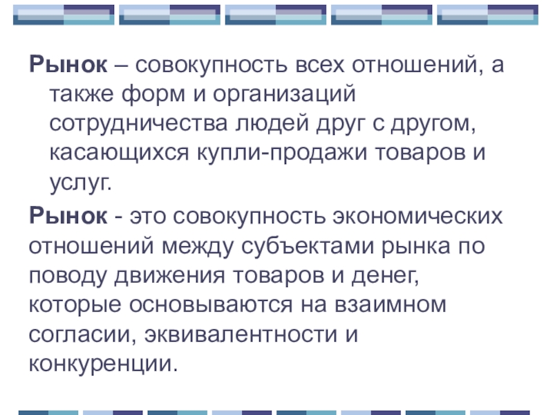 Слайд 3Рынок – совокупность всех отношений, а также форм и организаций