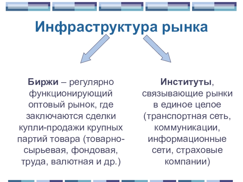 связывающие рынки в единое целое (транспортная сеть, коммуникации, информационные сети, страховые компании)