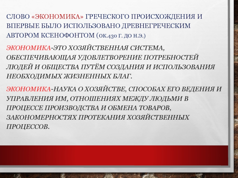потребностей людей и общества путём создания и использования необходимых жизненных благ.Экономика-наука о хозяйстве, способах его ведения и управления им, отношениях между людьми в процессе производства и обмена товаров, закономерностях протекания хозяйственных процессов.