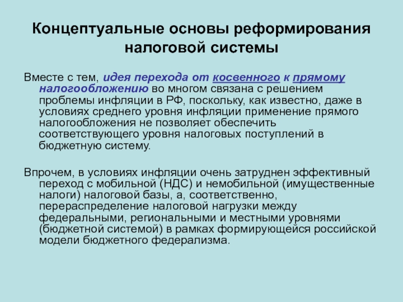 Слайд 12Концептуальные основы реформирования налоговой системы