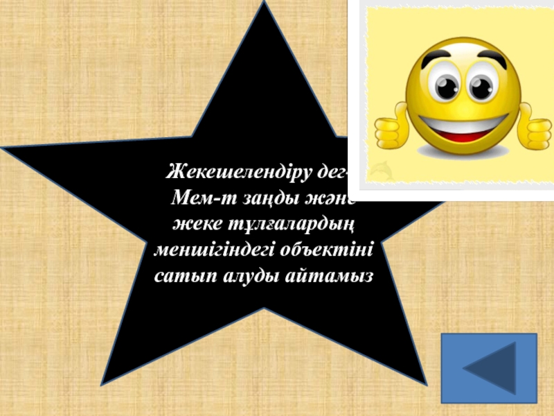 Жекешелендіру дег-зМем-т заңды және жеке тұлғалардың меншігіндегі объектіні сатып алуды айтамыз