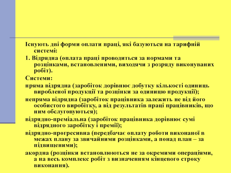 Слайд 28Існують дві форми оплати праці, які базуються на тарифній системі:
