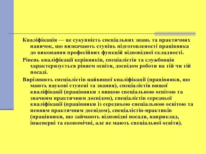 Слайд 9Кваліфікація — це сукупність спеціальних знань та практичних навичок, що