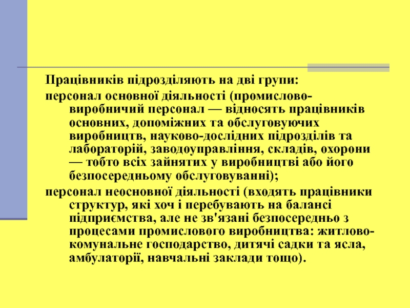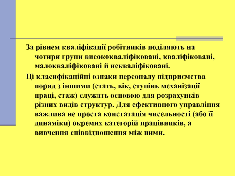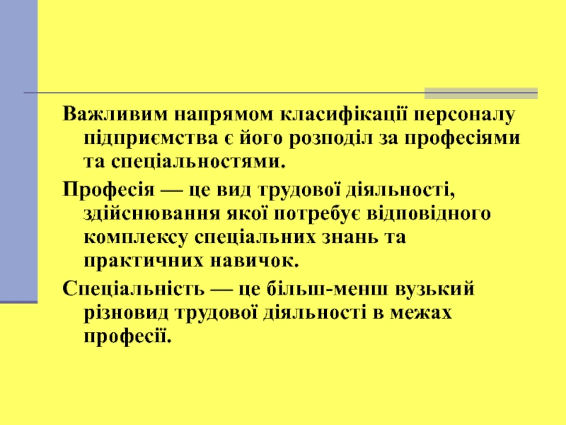 Слайд 8Важливим напрямом класифікації персоналу підприємства є його розподіл за професіями