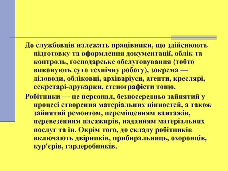 Слайд 7До службовців належать працівники, що здійснюють підготовку та оформлення документації,