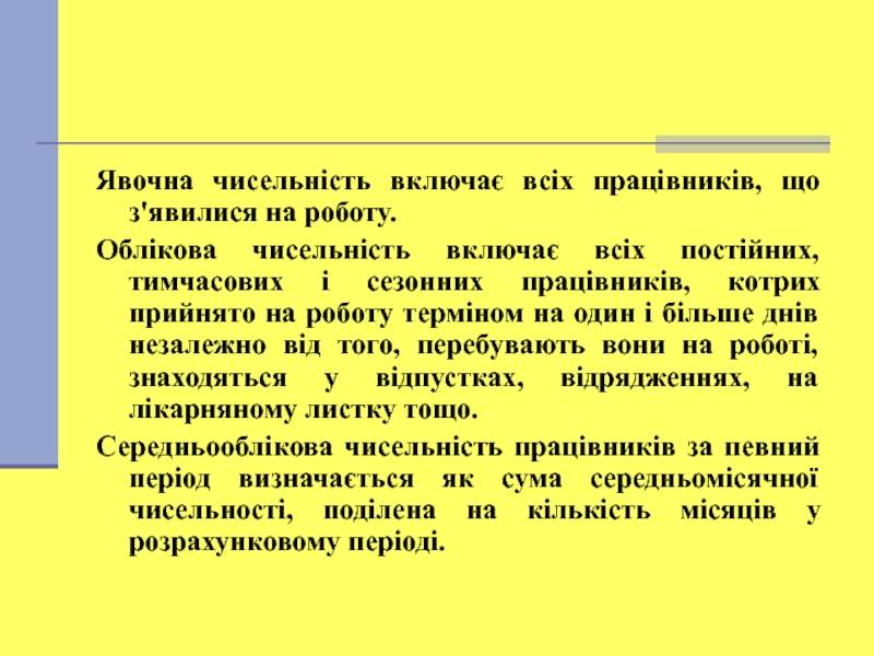 Слайд 13Явочна чисельність включає всіх працівників, що з'явилися на роботу.