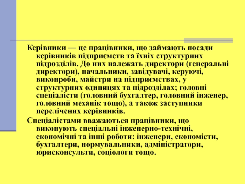 Слайд 6Керівники — це працівники, що займають посади керівників підприємств та