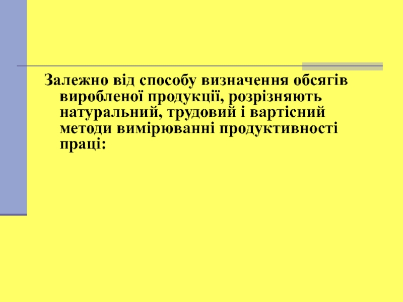 Слайд 17Залежно від способу визначення обсягів виробленої продукції, розрізняють натуральний, трудовий