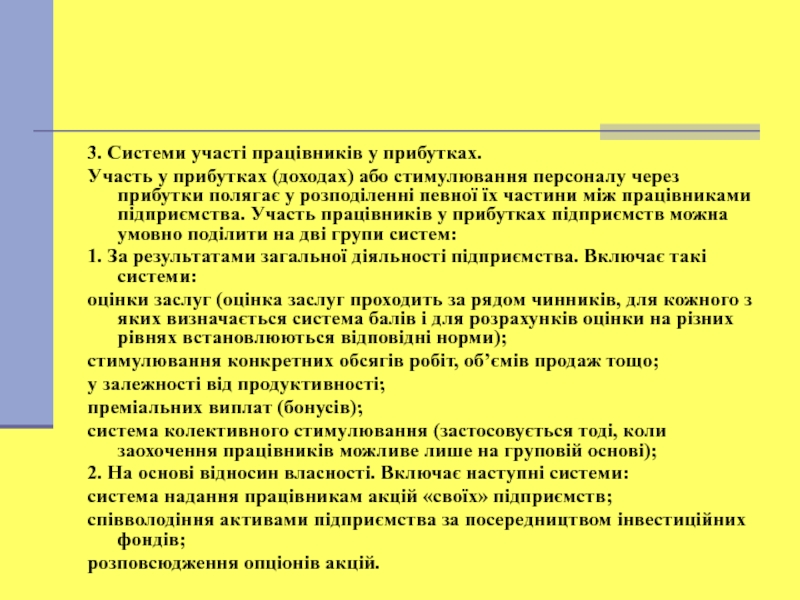 частини між працівниками підприємства. Участь працівників у прибутках підприємств можна умовно поділити на дві групи систем: