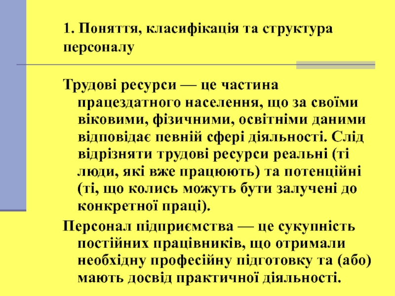 Персонал підприємства — це сукупність постійних працівників, що отримали необхідну професійну підготовку та (або) мають досвід практичної діяльності.