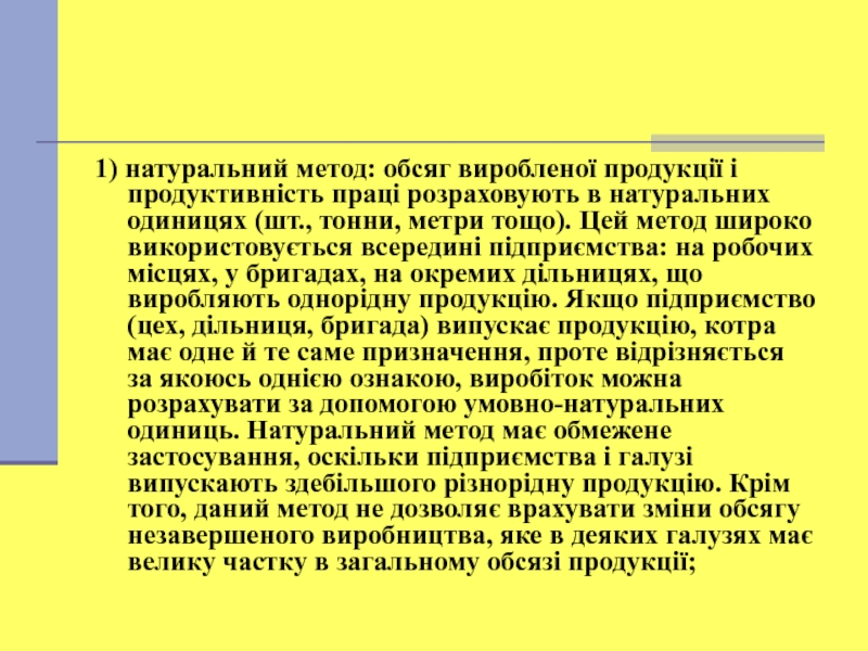 Слайд 181) натуральний метод: обсяг виробленої продукції і продуктивність праці розраховують