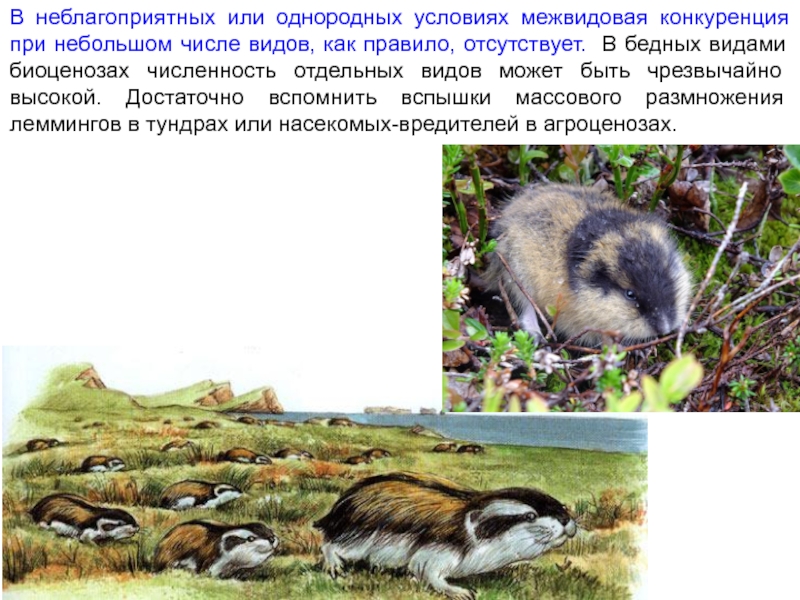 Слайд 31В неблагоприятных или однородных условиях межвидовая конкуренция при небольшом числе