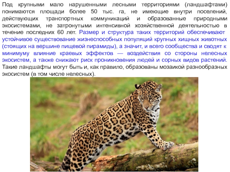 Слайд 22Под крупными мало нарушенными лесными территориями (ландшафтами) понимаются площади более