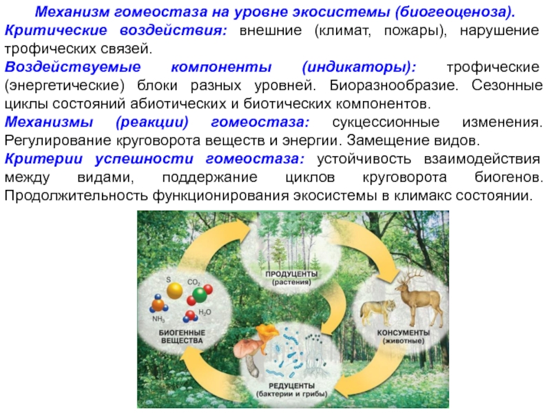 Слайд 75Механизм гомеостаза на уровне экосистемы (биогеоценоза).