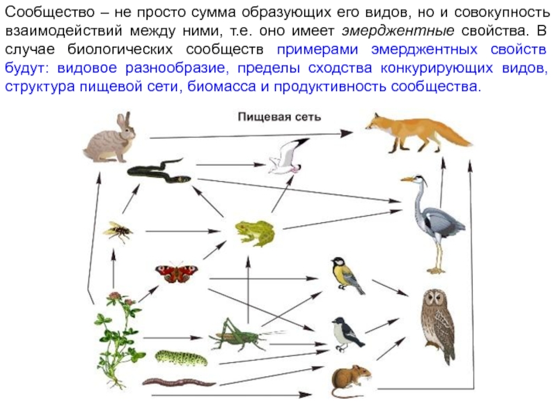 Слайд 72Сообщество – не просто сумма образующих его видов, но и