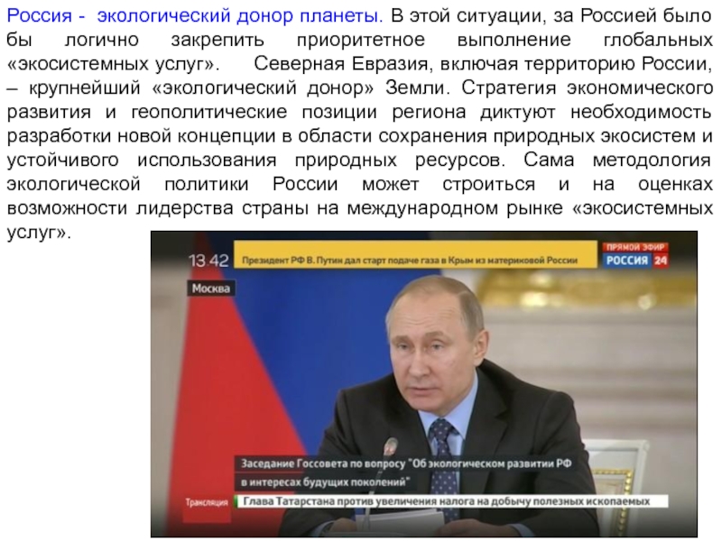 Слайд 68Россия - экологический донор планеты. В этой ситуации, за Россией